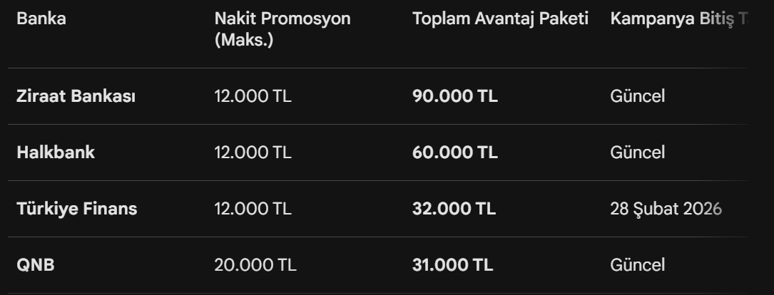 Şubat ayı itibarıyla bankaların sunduğu paketler sadece “nakit promosyon” ile sınırlı kalmıyor; faizsiz taksitli avanstan Bankkart Lira kazanımlarına kadar geniş bir yelpazeye yayılıyor.