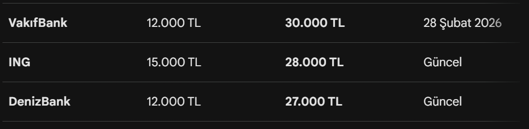 %75 Dul Aylığı Alanlar: Teklifler kampanyalı bankalarda 12.000–15.000 TL aralığına yükselmiş durumda.