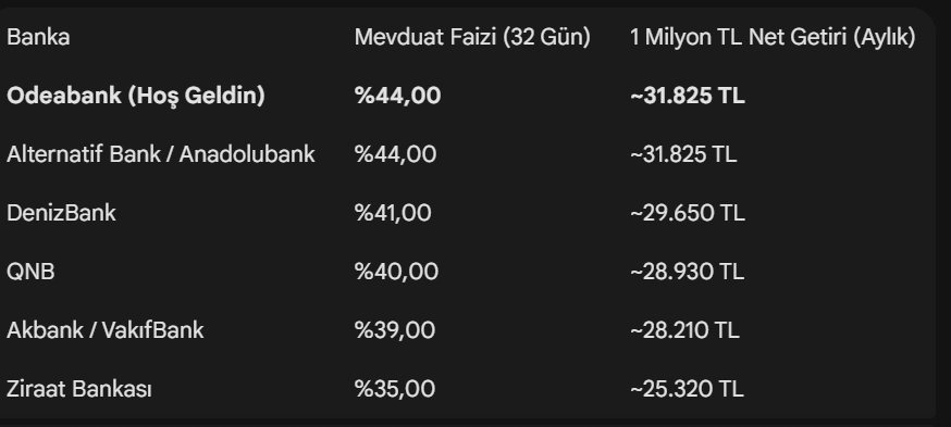 “Hoş Geldin” Avcılığı: Mevcut bankanızın sunduğu oran düşükse, yeni müşteri avantajı sunan diğer bankaları değerlendirerek getirinizi maksimize edebilirsiniz.