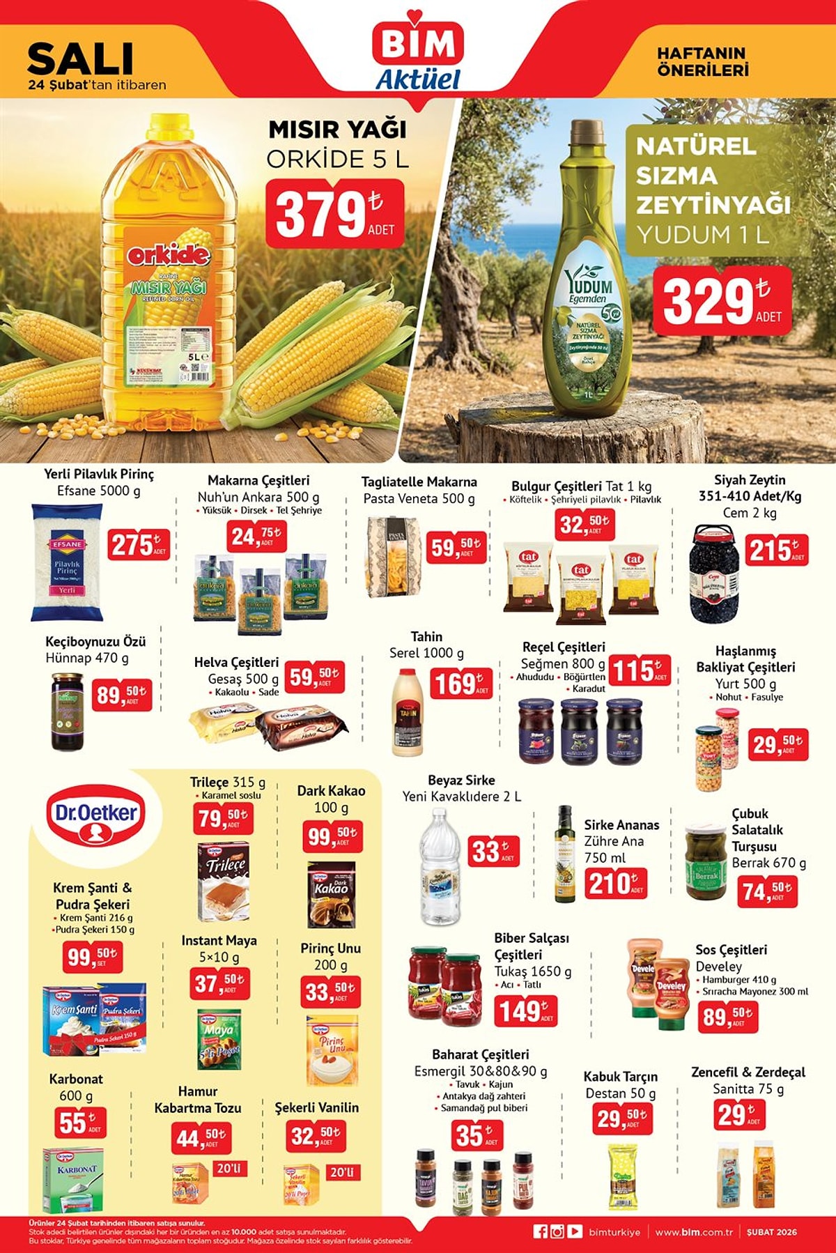BİM’in aktüel kampanyası 24 Şubat Salı gününden itibaren geçerli olacak. Özellikle mısır yağı ve natürel sızma zeytinyağında açıklanan fiyatların tüketici ilgisini artırması bekleniyor. Kampanya ürünleri stoklarla sınırlı olarak satışa sunulacak.