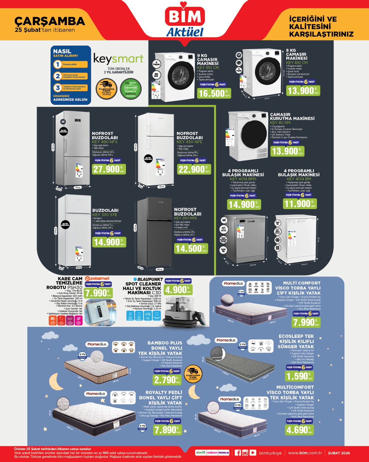 BİM’de beyaz eşya festivali başlıyor! Keysmart buzdolabı, çamaşır ve bulaşık makinelerinde kaçırılmayacak fiyatlar… 25 Şubat BİM Aktüel kataloğunda peşin fiyatına taksit avantajı ve yatak fırsatları haberimizde.