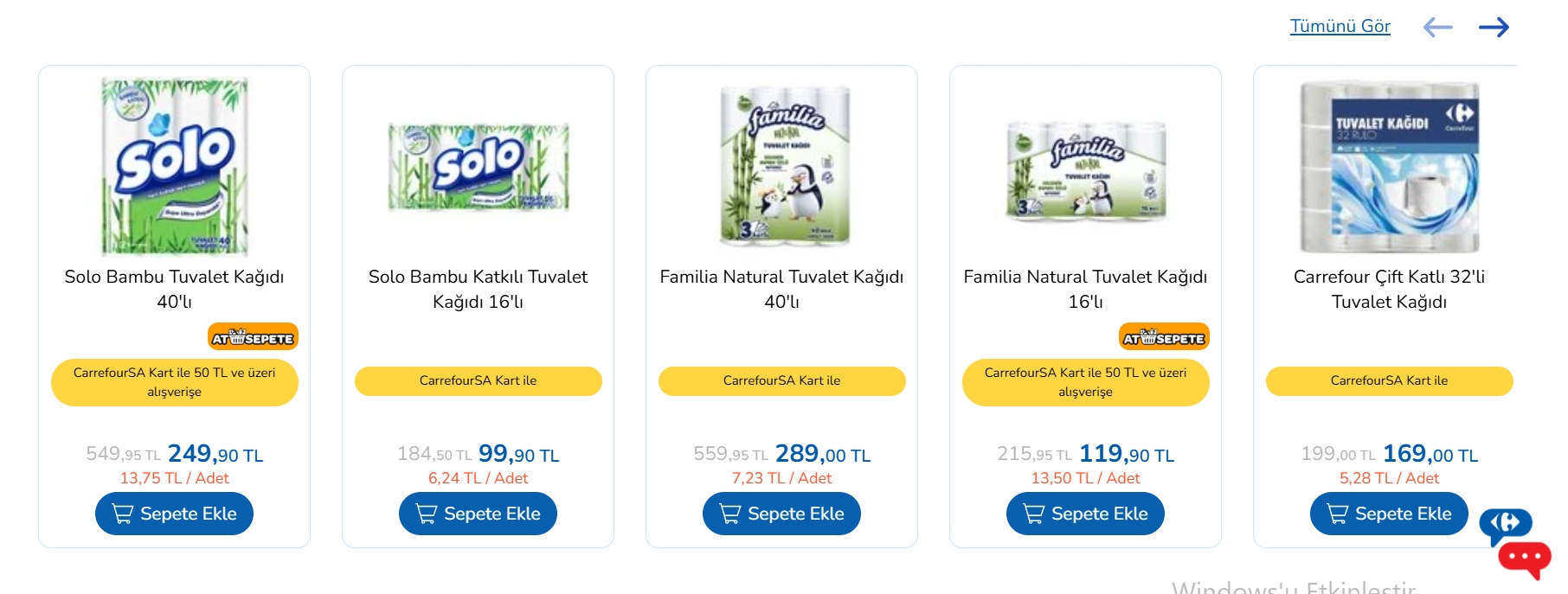 Özellikle Carrefour markalı 32’li pakette birim fiyatın daha düşük olması dikkat çekiyor.