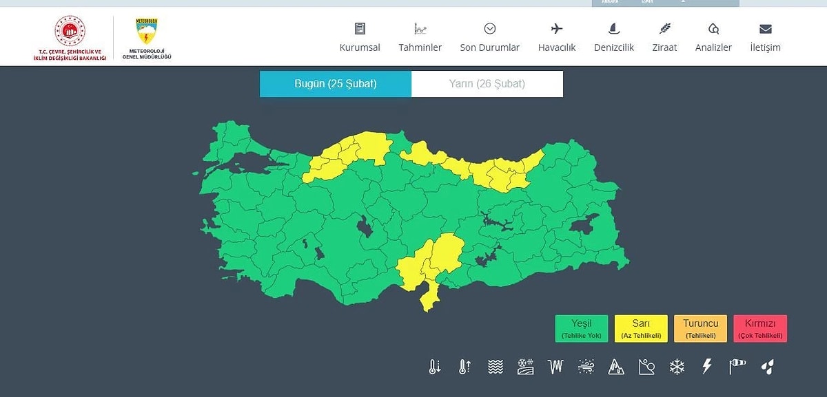 Meteoroloji’den gelen son dakika raporuna göre, Van hariç tüm Türkiye yağışlı havanın etkisi altına giriyor. Bugün İstanbul’da yağmurla başlayan hava dalgası, Perşembe günü yerini karla karışık yağmura bırakacak; Ankara ise Perşembe günü kar yağışıyla buz kesecek. Doğu Karadeniz ve İç Anadolu’nun doğusu için “turuncu” ve “sarı” kodlu uyarılar yapılırken, rüzgarın hızının 70 km/saate kadar çıkacağı tahmin ediliyor. İşte bölge bölge 3 günlük kritik hava tahmini…