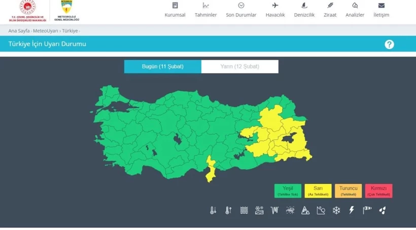 11 Şubat Çarşamba günü Türkiye genelinde hava sertleşiyor. Yağmur birçok bölgede etkili olurken, İç Anadolu ve Doğu’da kar, bazı illerde ise kuvvetli sağanak ve fırtına bekleniyor.