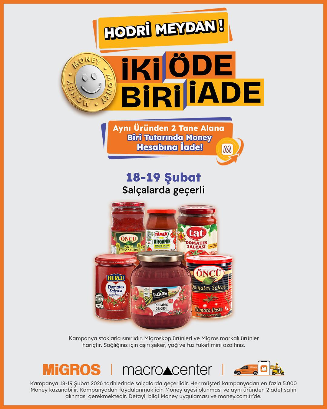 Migros ve Macrocenter, 18-19 Şubat tarihlerinde salça ürünlerinde dikkat çeken bir kampanyaya imza atıyor. Aynı üründen iki adet alan müşterilere, bir ürünün tutarı kadar Money puan aynı gün hesaplarına yükleniyor.