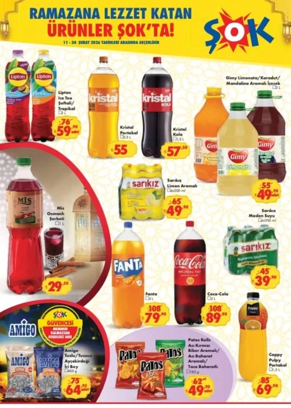 ŞOK Market, 11-24 Şubat 2026 tarihleri arasında geçerli “Ramazana Lezzet Katan Ürünler” kampanyasını duyurdu. Hurma, bakliyat, yağ, şekerleme, içecek ve temel gıda ürünlerinde dikkat çeken fiyatlar raflara yansıdı. İşte öne çıkan ürünler ve kampanya detayları…